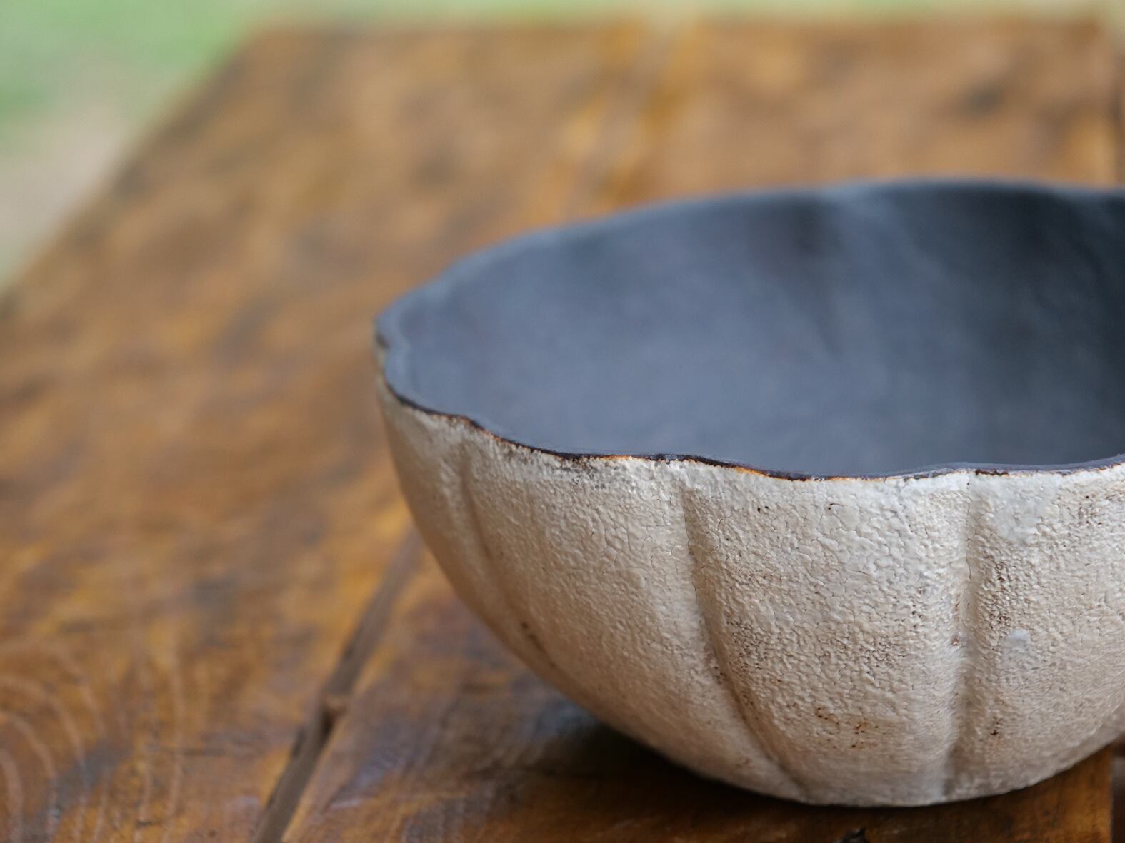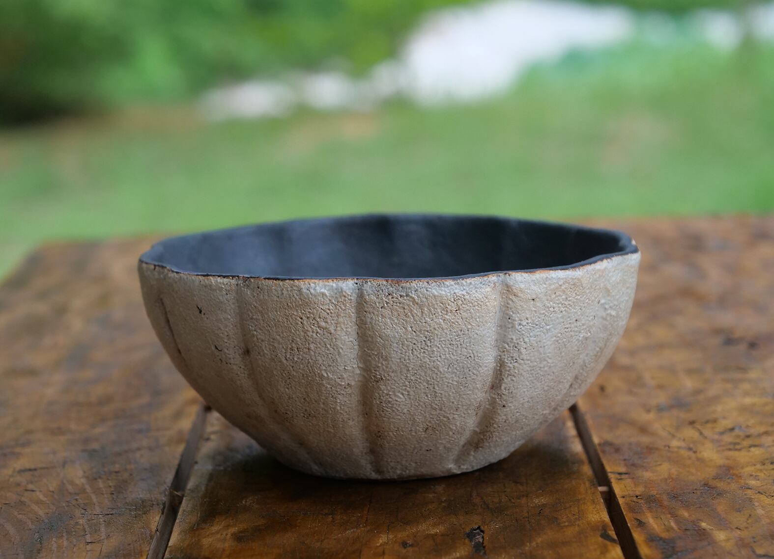 中は鉄釉の黒(備中吹屋の弁柄使用)外は白化粧を施した瓜形。